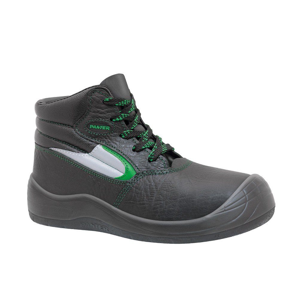 Corte; Piel Flor Natural 1ª Calidad Hidrofugada.Puntera; Plástica "Fiberplast" 200 J.Planta Antiperforación; Textil 1100N / Tipo PS.Suela; PU + Caucho Nitrilo Altas Temperaturas 300°.Unión Corte Piso; Inyección Directa.