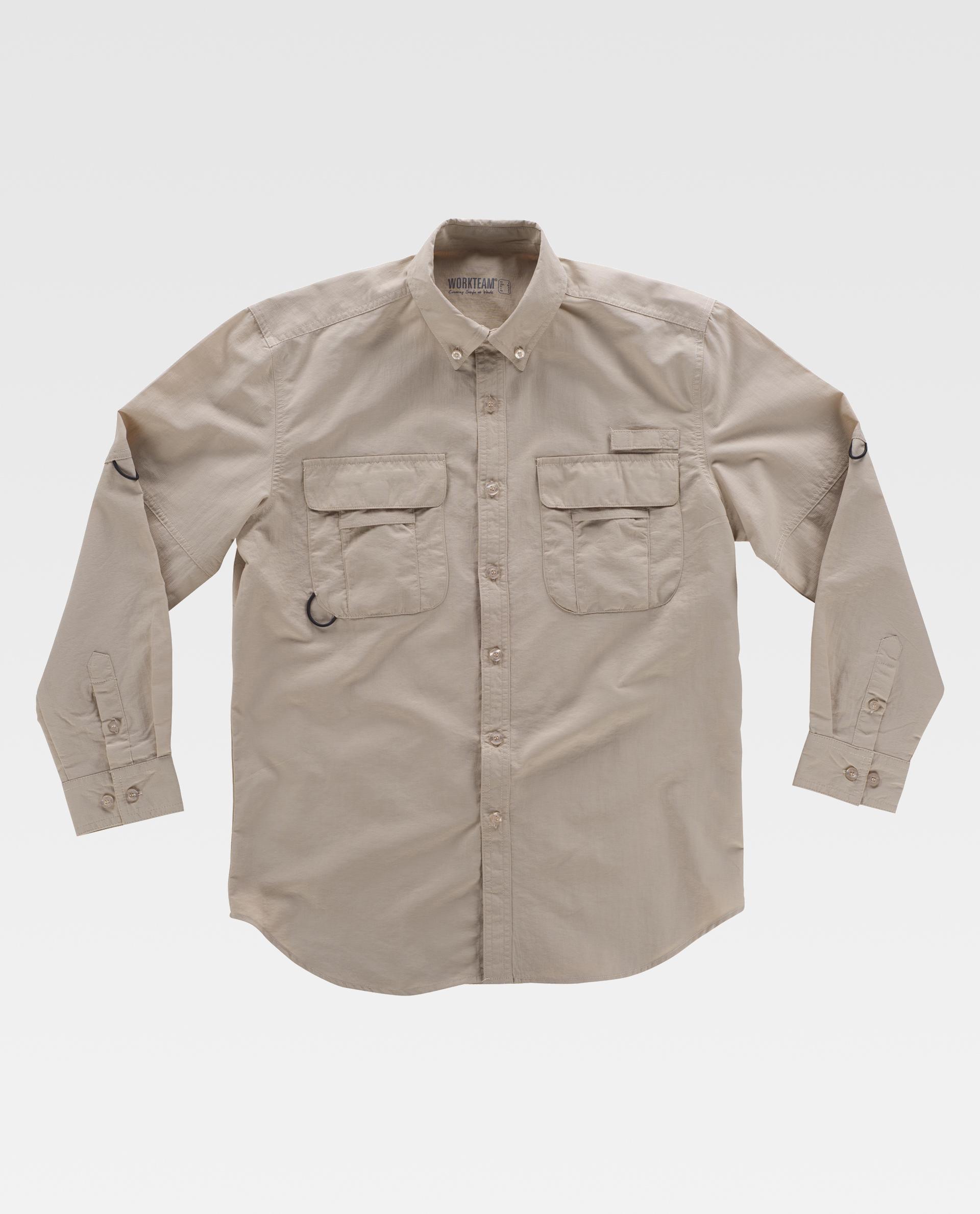 Camisa safari con abertura trasera y rejilla interior para regular la transpiración.