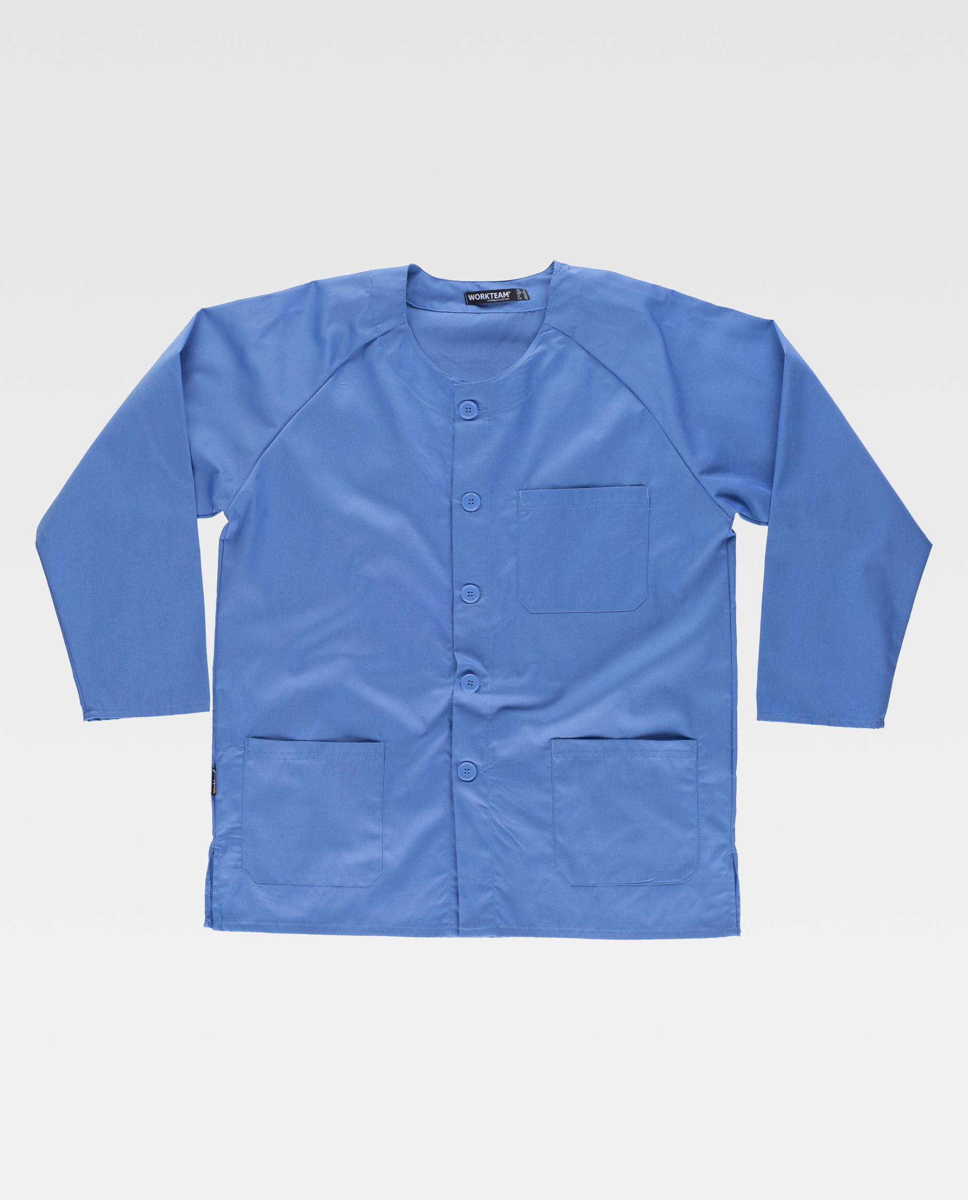 Chaquetilla sanitaria unisex de manga ranglan larga.