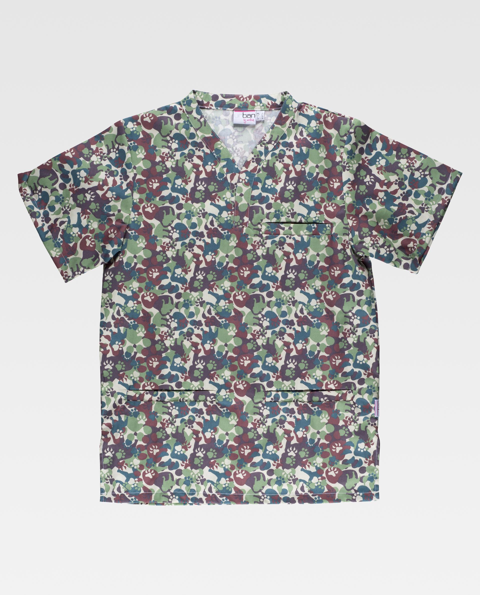 Casaca unisex de manga corta con estampado de camuflaje y acabado antimanchas.