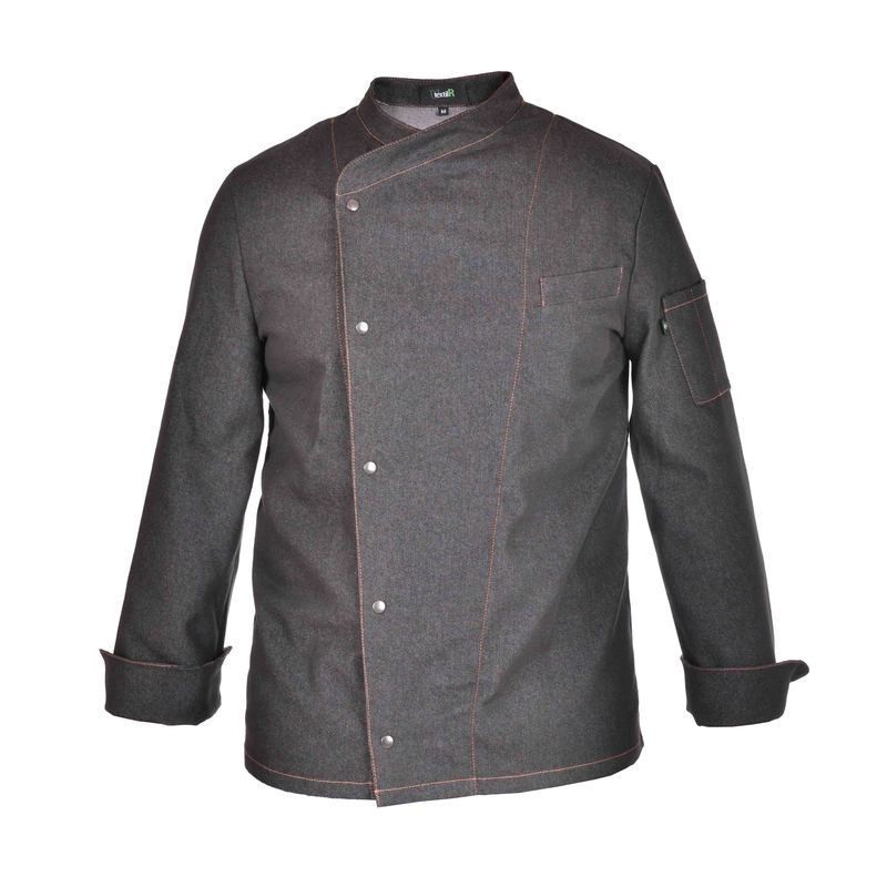 Chaquetilla de cocina para hombre, diseñada para ofrecerte gran calidad y alto rendimiento en tu trabajo diario. Confeccionada en tejido denim elástico y de tacto agradable, esta chaquetilla es perfecta para profesionales de la cocina como chefs, cocineros, camareros y personal de restauración. Su elegante diseño en cuello cruzado y cómoda manga la hacen ideal para cualquier estilo.