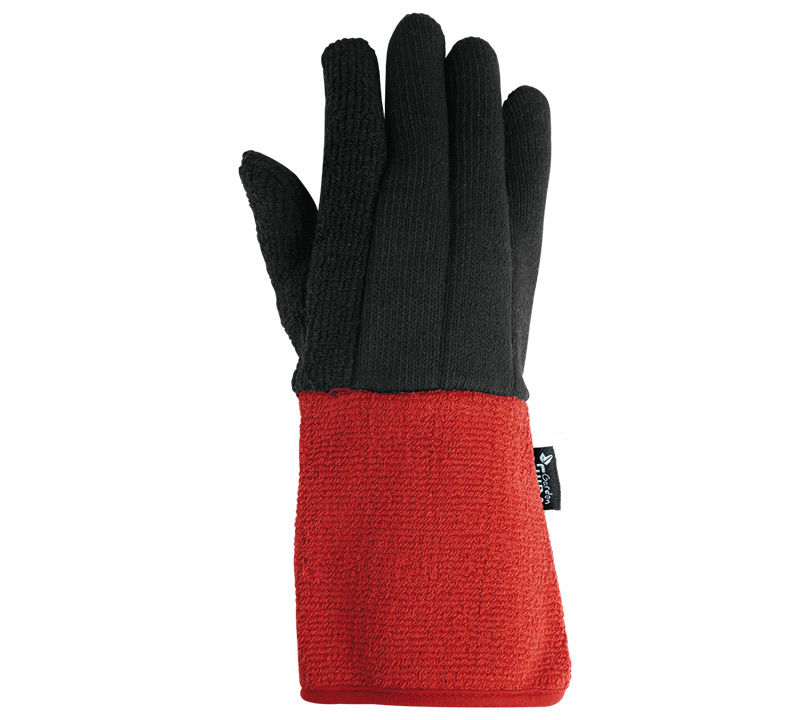 Muy confortable, no irrita la piel. Buen agarre en superficies secas. Resistente al calor por contacto (250ºC durante 15 segundos). Manguito de seguridad, fácil de quitar y poner. Color oscuro para trabajos en ambientes sucios. Con blíster reciclado para punto de venta.