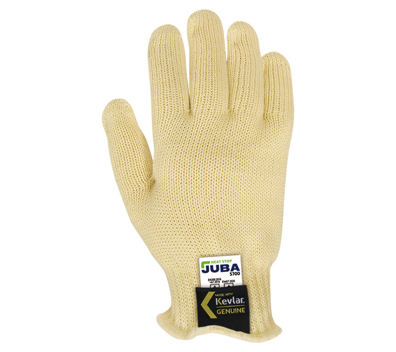 Guante sin costuras de fibra para-aramida (Kevlar®) con forro de algodón.