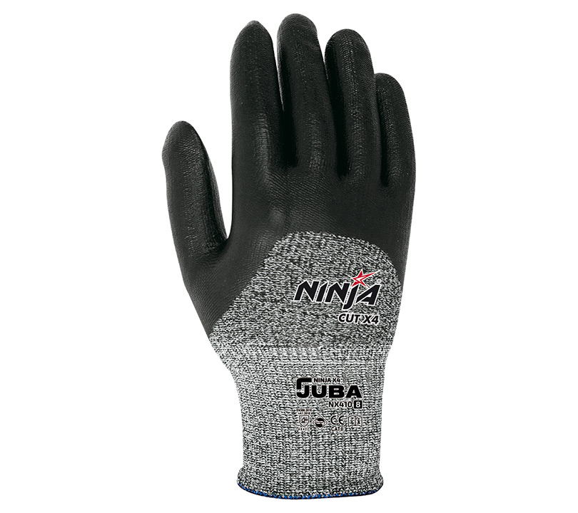GUANTE NAILON/FIBRA DE VIDRIO SIN COSTURAS RECUBIERTO BIPOLÍMERO (PU+NITRILO) EN PALMA Y ½ DORSO (