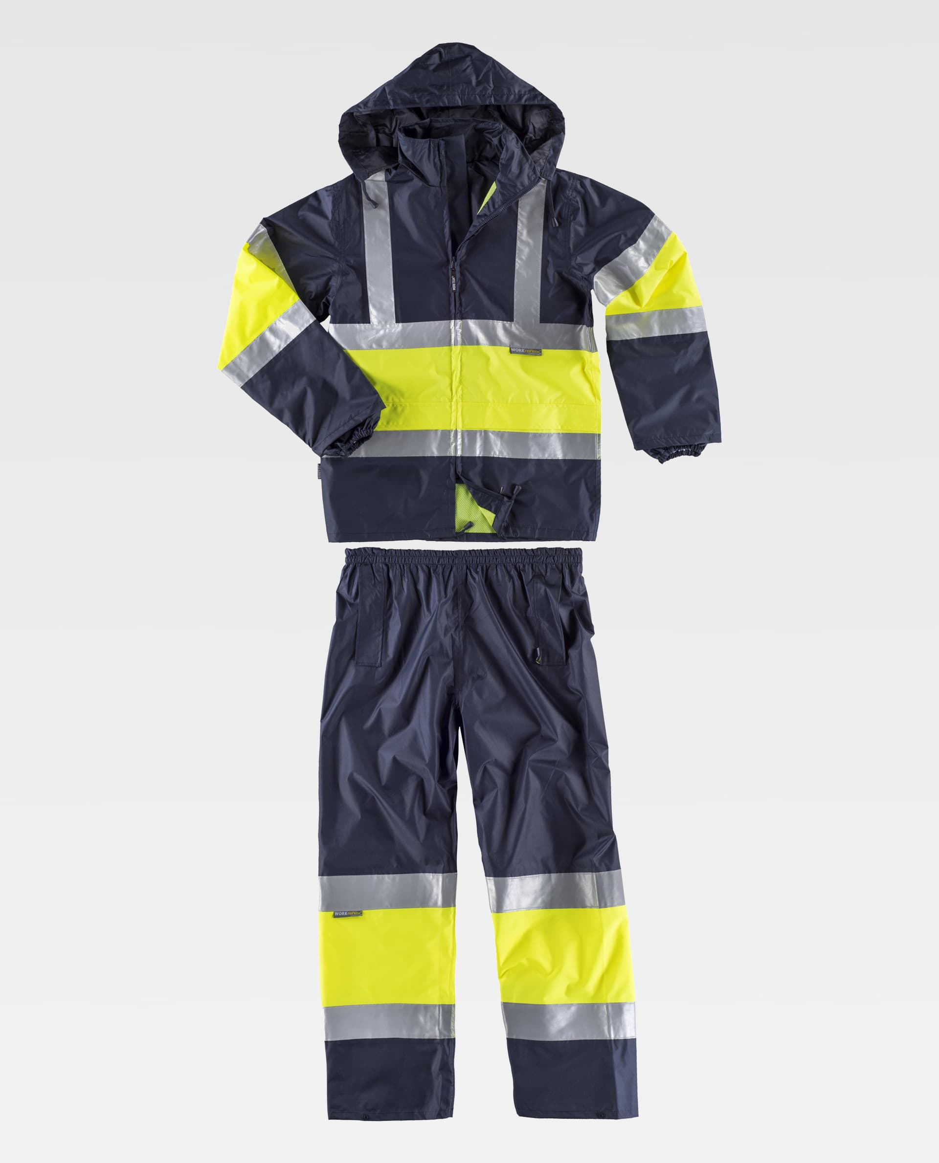 Traje de agua impermeable, combinado y con cintas reflectantes§Parte superior: Impermeable con cierre de cremallera.