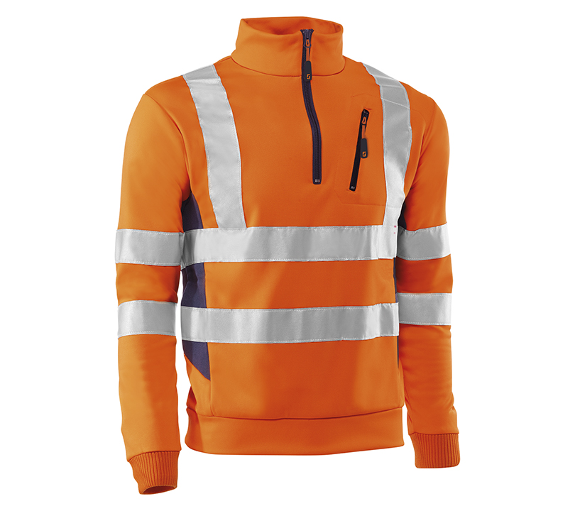SUDADERA BANDAS REFLECTANTES 3M®. NARANJA CON DETALLES MARINO EN LOS LATERALES. (COD.:HV791)