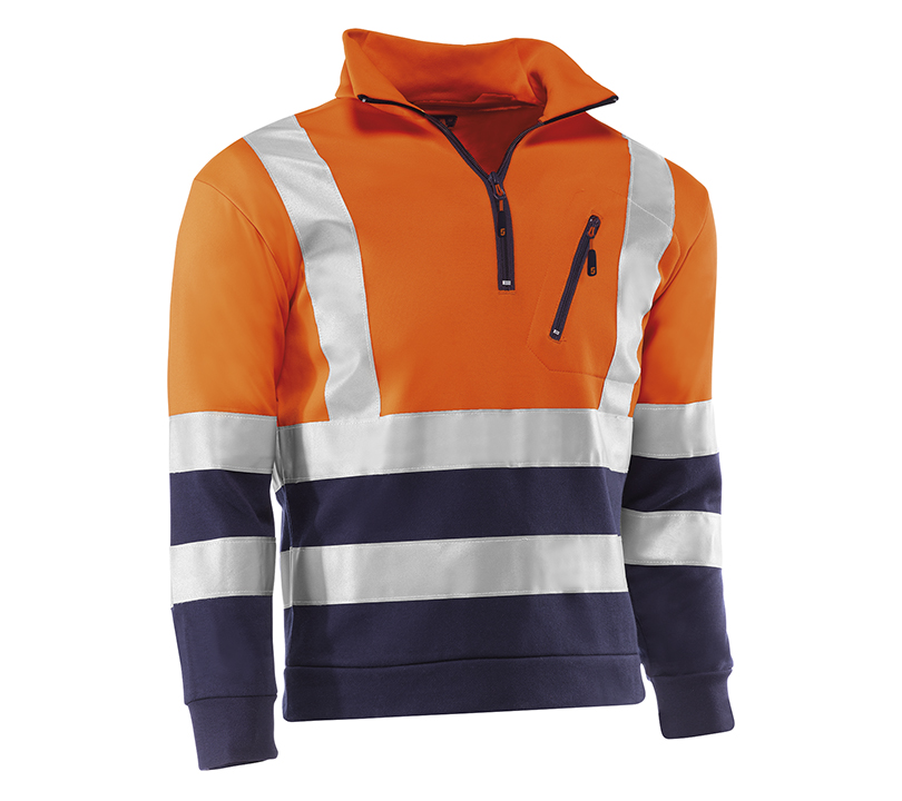 SUDADERA CON BANDAS REFLECTANTES 3M®. NARANJA FLÚOR/MARINO (COD.:HV793)