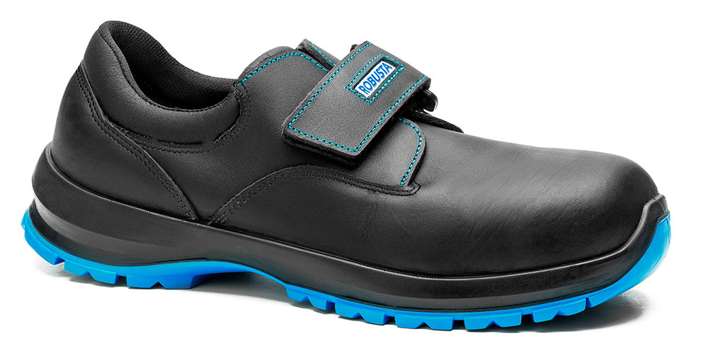 Ficha técnicaZapato de seguridad en piel flor vacuna, sistema de cierre mediante velcro. Puntera y plantilla no metalica con suela PU/PU.